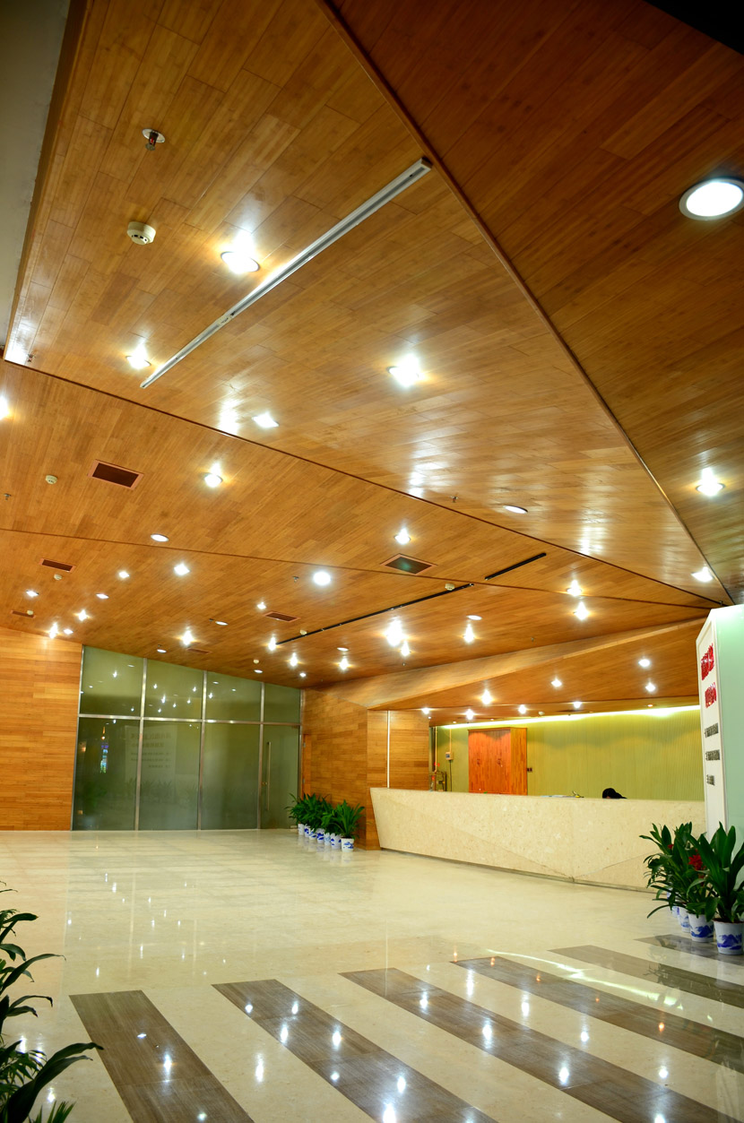 湖南湘江新區(qū)規(guī)劃展示館位于長沙市瀟湘南大道383號(洋湖濕地公園東門對面),總建筑面積7000余平方米。展館成立于2011年6月,主要負(fù)責(zé)展示湖南湘江新區(qū)建設(shè)成就和發(fā)展規(guī)劃,是展示湖南湘江新區(qū)形象的重要窗口。展館大面積采用桃花江室內(nèi)竹材進(jìn)行裝飾,設(shè)計師運(yùn)用質(zhì)樸的天然竹材烘托出展館的綠色建筑理念和湖湘文化底蘊(yùn),使得展館更具品位。館內(nèi)竹材裝飾歷經(jīng)5年仍然保持良好狀態(tài),沒有任何發(fā)霉、變形和開裂現(xiàn)象,有力證明了桃花江室內(nèi)裝飾竹材的高品質(zhì)。