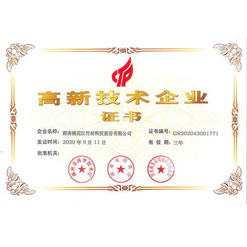 桃花江竹材連續(xù)12年都榮獲“高新技術(shù)企業(yè)”榮譽稱號。