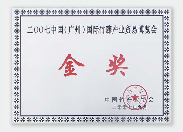 國(guó)際竹藤產(chǎn)業(yè)貿(mào)易博覽會(huì)金獎(jiǎng)